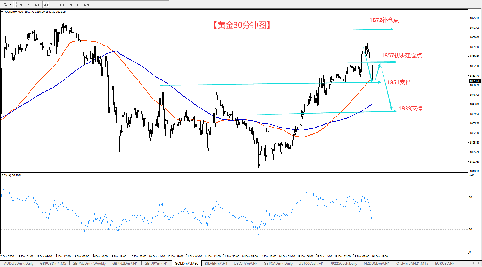 至于交易,1857的空单已经入场,目前继续持有,上方补仓点从1875下调至1872,防守关注1887,短线目标1839,中期目标看新低。