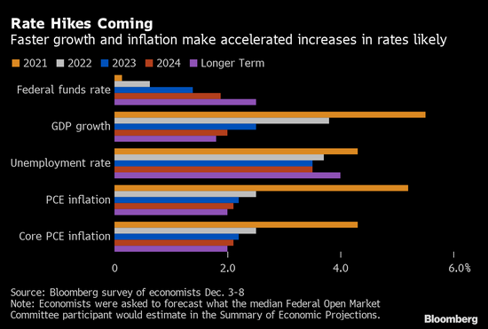 调查还显示,FOMC可能预测通胀持续,将2022年整体通胀率预测上调至2.5%。预计决策者还将预料2022年底失业率降至3.7%,低于4%的长期预测。
