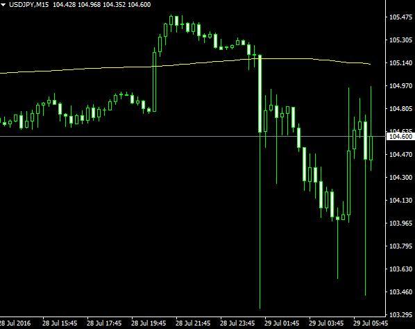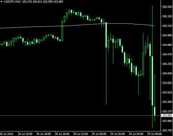 7月29日,在日本央行决议出炉之前,日元行情表现地极其狂躁,振幅接近2%,完全是无解行情,同时也体现了在重磅数据揭晓前,多空力量之间的无脑碰撞。