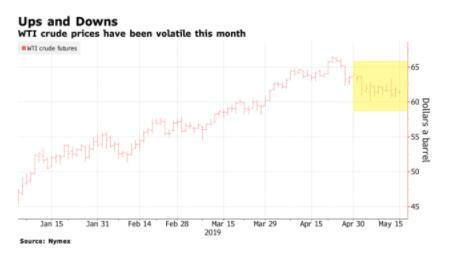本月油价在涨与跌之间摇摆不定,因投资者正在权衡波斯湾日益紧张的局势与抑制需求的美中贸易战升级,将会如何影响后续油价走势。
