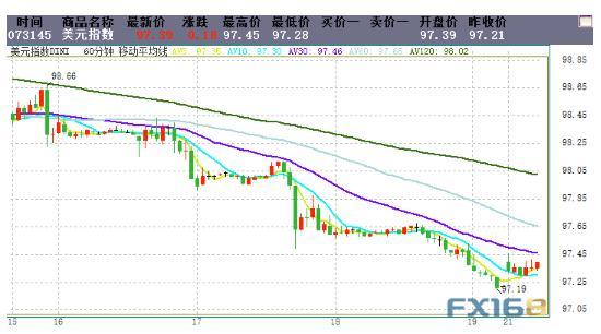 受英镑/美元大幅下挫影响,周一亚市盘初,美元指数展开反弹,最高触及97.45。上周美元指数遭遇打击,上周五最低下挫至97.19。