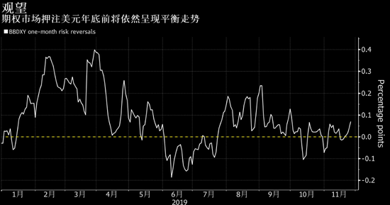 衍生品市场短期内实际上预示着美元前景的改善:彭博美元即期指数的一个月风险逆转(看涨合约相对于看跌合约的溢价)将创下自7月以来的最大单月涨幅。这与彭博调查分析师的中值预估产生冲突,分析师预计美元兑大多数10国集团货币将贬值。