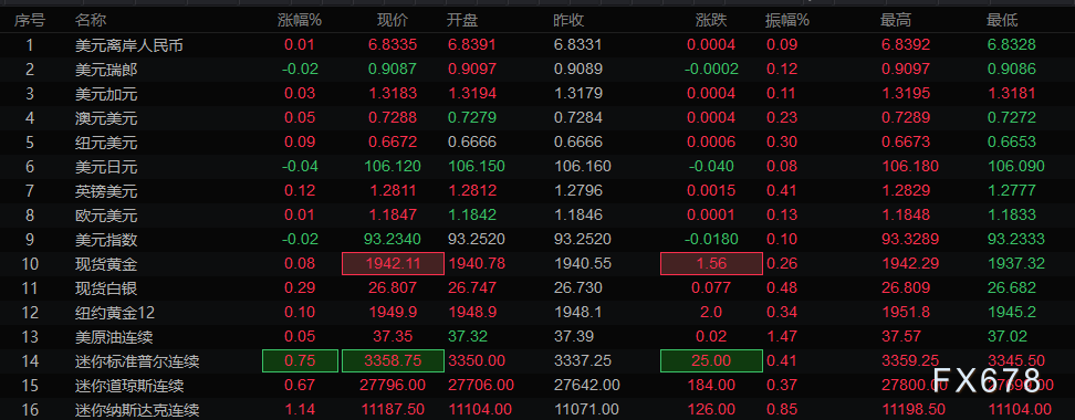 美元指数跌0.16%至93.24;上周五公布的数据显示,美国8月消费者物价指数(CPI)较前月上涨0.4%,7月为上涨0.6%,该消息对美元影响不大。总体而言,一些分析师认为,在新冠疫苗以及全球从疫情引发的低迷中复苏的不确定性支撑下,美元作为避险资产仍有进一步上涨的空间。