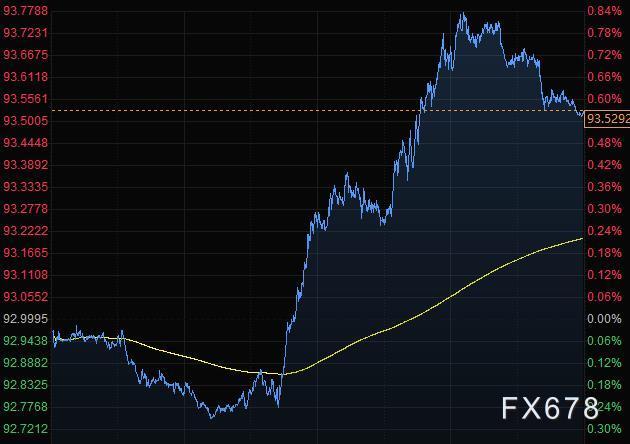 美元指数触及8月中来最高,尾盘上涨0.57%,报93.52;美元在亚洲时段表现迟滞,欧洲上午上扬,在美国交易时段大幅上涨,因欧洲股市跌至两周低点,美国股市急挫。