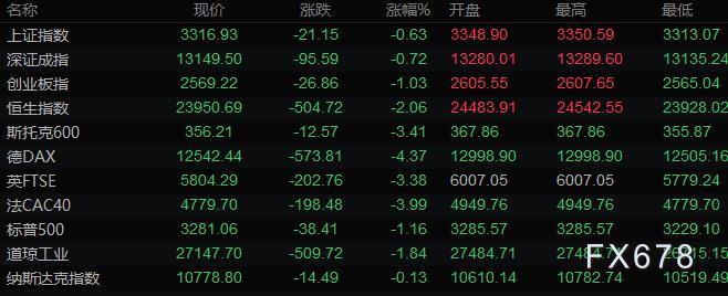 全球主要市场行情一览