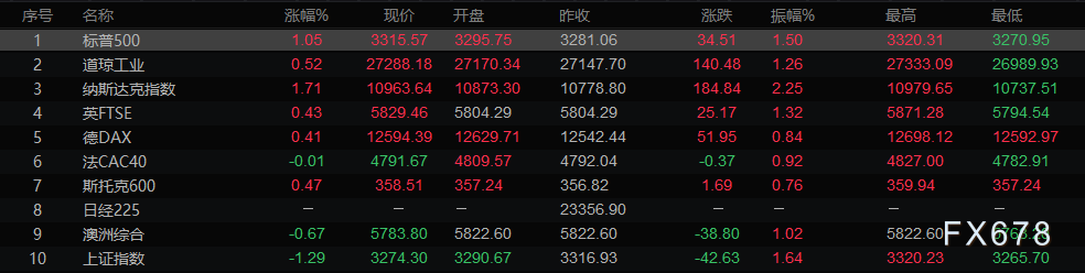全球主要市场行情一览