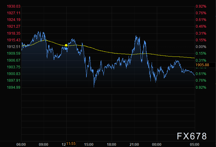 金价周二连续第二个交易日下跌,迈向7月以来最低收盘水平,盘中最低触及1894.79美元/盎司,收报1900.21美元/盎司,因美国经济刺激方案通过前景渺茫加之新冠疫情反弹,投资者涌向美元寻求避险。