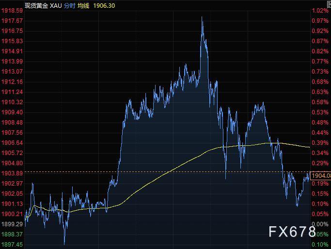 金价冲高回落,现货黄金盘中一度涨逾1%,至1918.59美元/盎司,随着美元指数回升、美股大跌,尾盘收于1904美元附近,此前美国国会民主党议员称经济刺激方案措辞仍存在争议。