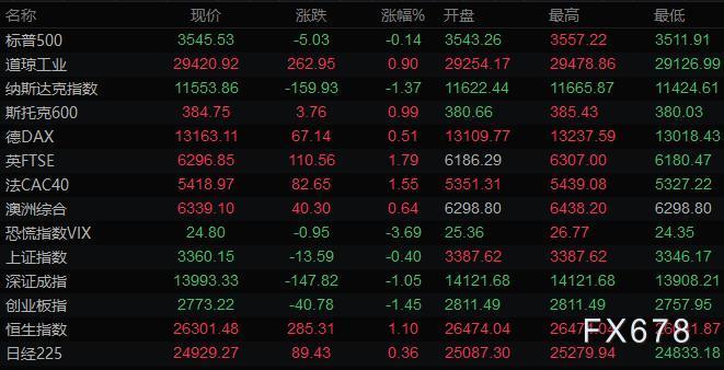 全球主要市场行情一览