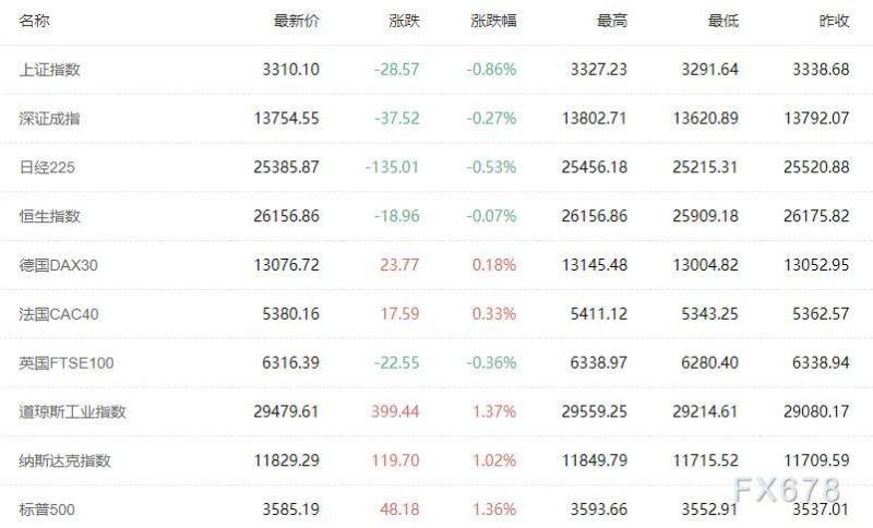 全球主要市场行情一览