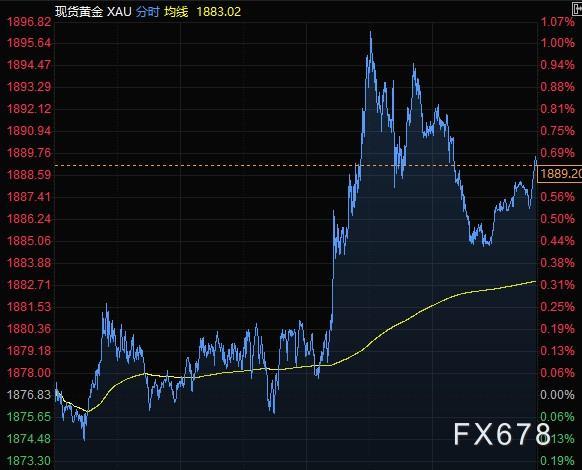 现货黄金一度大涨20美元,刷新近四日高点至1896.82美元/盎司,因美股攀升导致美元再度疲软。蒙特利尔银行资本市场金属衍生品交易主管Tai Wong称,周五是回归均值,美元回吐部分周涨幅,帮助放大了黄金买盘效应。