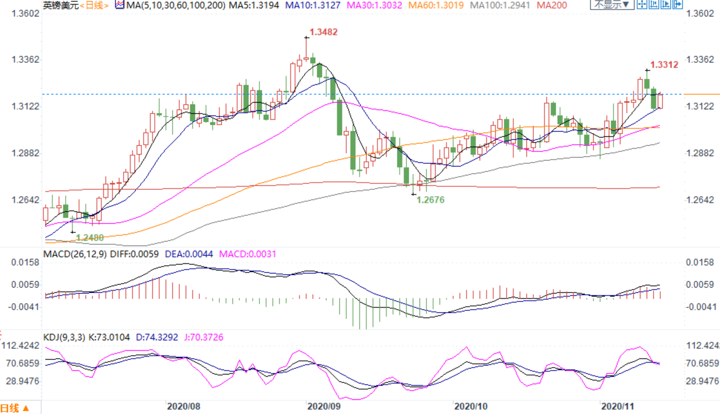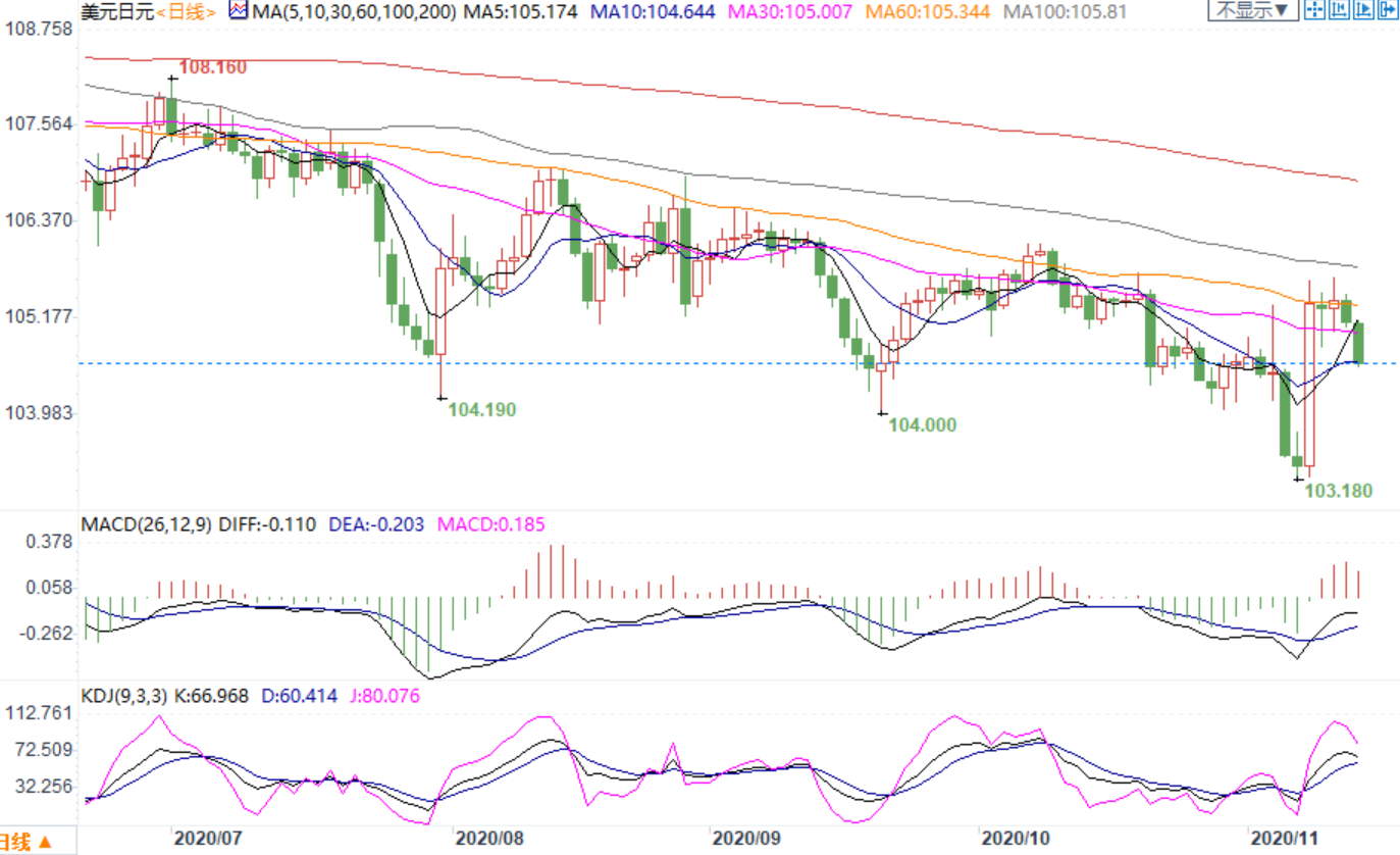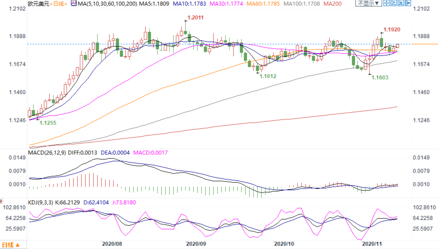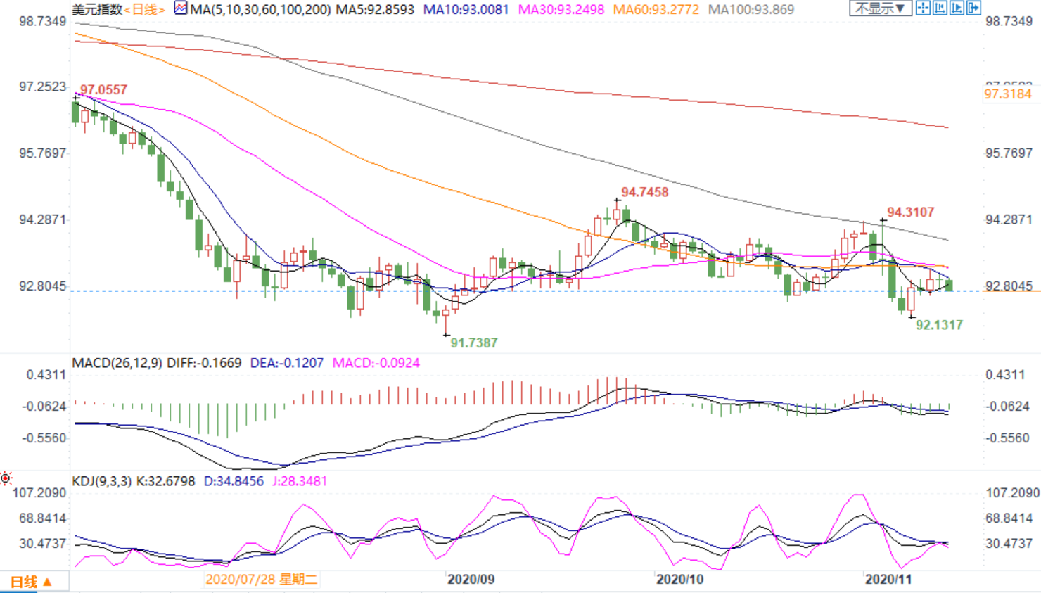 本周拜登胜选的消息令美元一度创逾两个月新低92.13,但随着美国大选的不确定发酵,特朗普拒绝认输,这令市场避险需求升温。