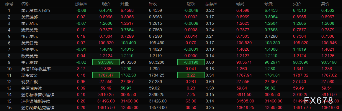 上周美元指数跌0.12%至90.33,周三一度重新站上91关口,不过此后两个交易日市场风险情绪逐步回升,避险美元遭到抛售。