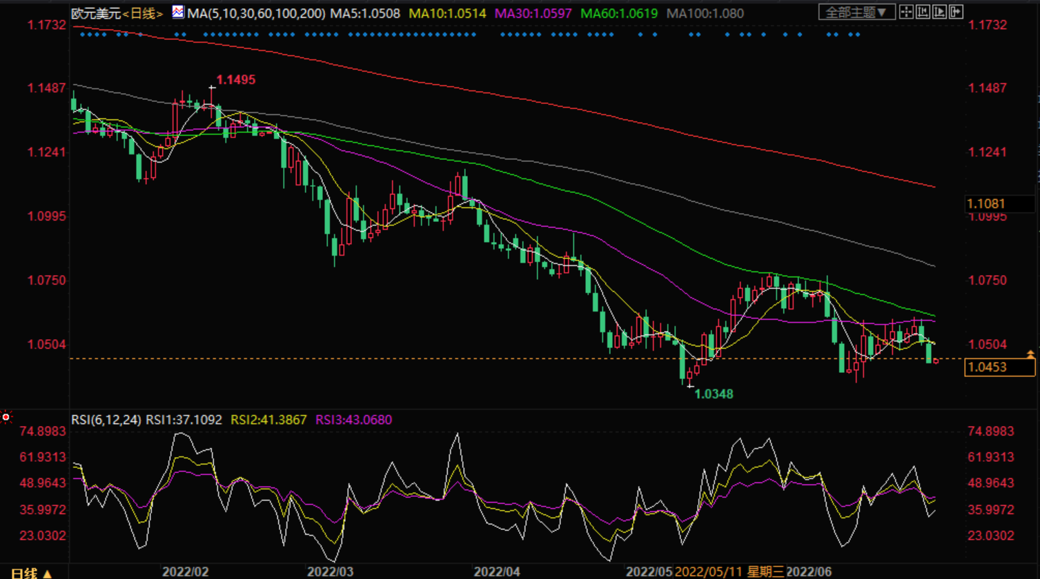 美元指数昨日震荡上行,刷新3个交易日高位,现汇价交投于104.40附近。除空头回补对汇价构成了一定的支撑外,美股下挫激发市场的避险情绪是支撑避险美元反弹的主要原因。此外,美联储官员的乐观言论和投资者对欧洲央行的加息预期降温也对汇价构成了一定的支撑。今日关注104.80附近的压力情况,下方支撑在104.00附近。