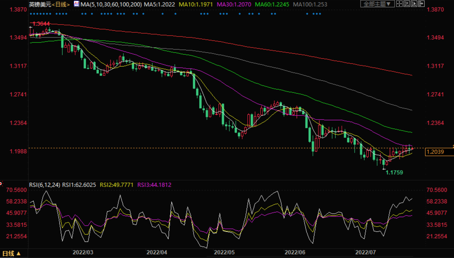 美联储7月份的加息预期和英国政治不确定的担忧情绪限制了汇价的反弹空间。在7月25日的英国党首选举辩论上,前财政大臣苏纳克和外交大臣特拉斯就经济和外交政策激烈争吵。这场辩论遭到英国保守党、工党和自由民主党联合批评,保守党前主席莫德称,两人灾难性的辩论是在砸保守党的“招牌”,自由民主党和工党表示,两名候选人没有给出任何解决问题的方案,只有无休止的争吵和熟悉的承诺。