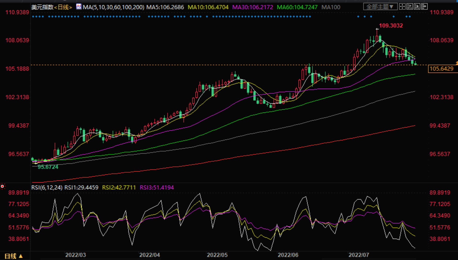 在美国6月核心通胀数据超市场预期之后,作为市场的回应,周一(8月1日)美元指数延续下行走势,并在盘中跌破106.00整数关口,其地方一度超0.17%。面对此种情况,投资者普遍认为,美联储在利率方面或不得不采取更多措施,美元指数将随之迎来大涨行情。