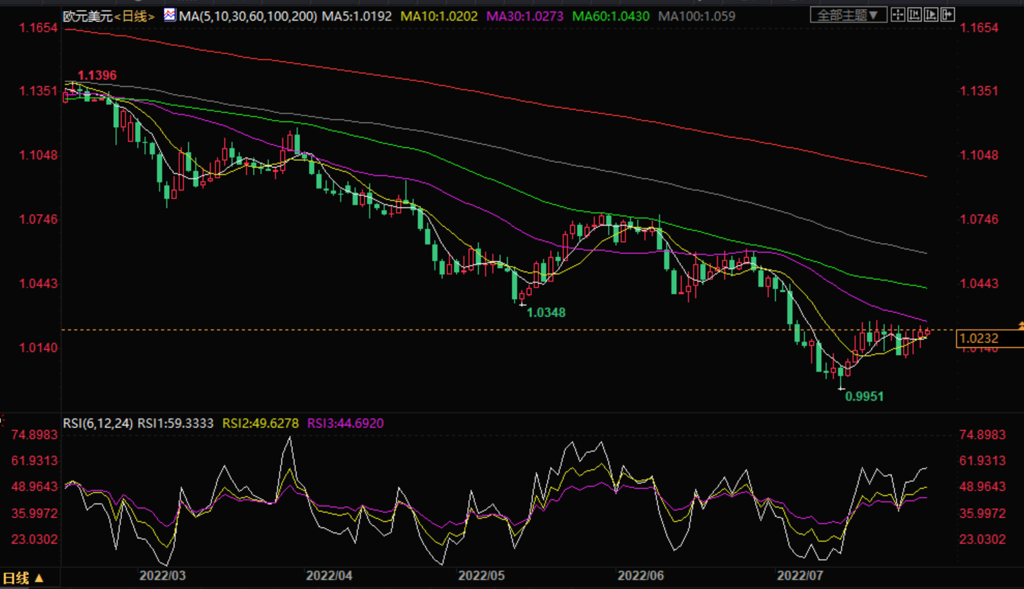 美元指数:截止发稿,美元指数承压,现报105.65,跌幅0.16%。欧市盘前,美元指数保持在105.80附近的低位。这样一来,在市场温和悲观的情绪以及美国关键就业报告和 7 月 ISM 采购经理人指数之前的谨慎情绪下,美元指标减少了近期的跌幅。展望未来,美国 7 月份 ISM 制造业采购经理人指数预计为 52,而之前为 53,这可能会在该月美国 ISM 服务业采购经理人指数之前直接推动美元指数走势。