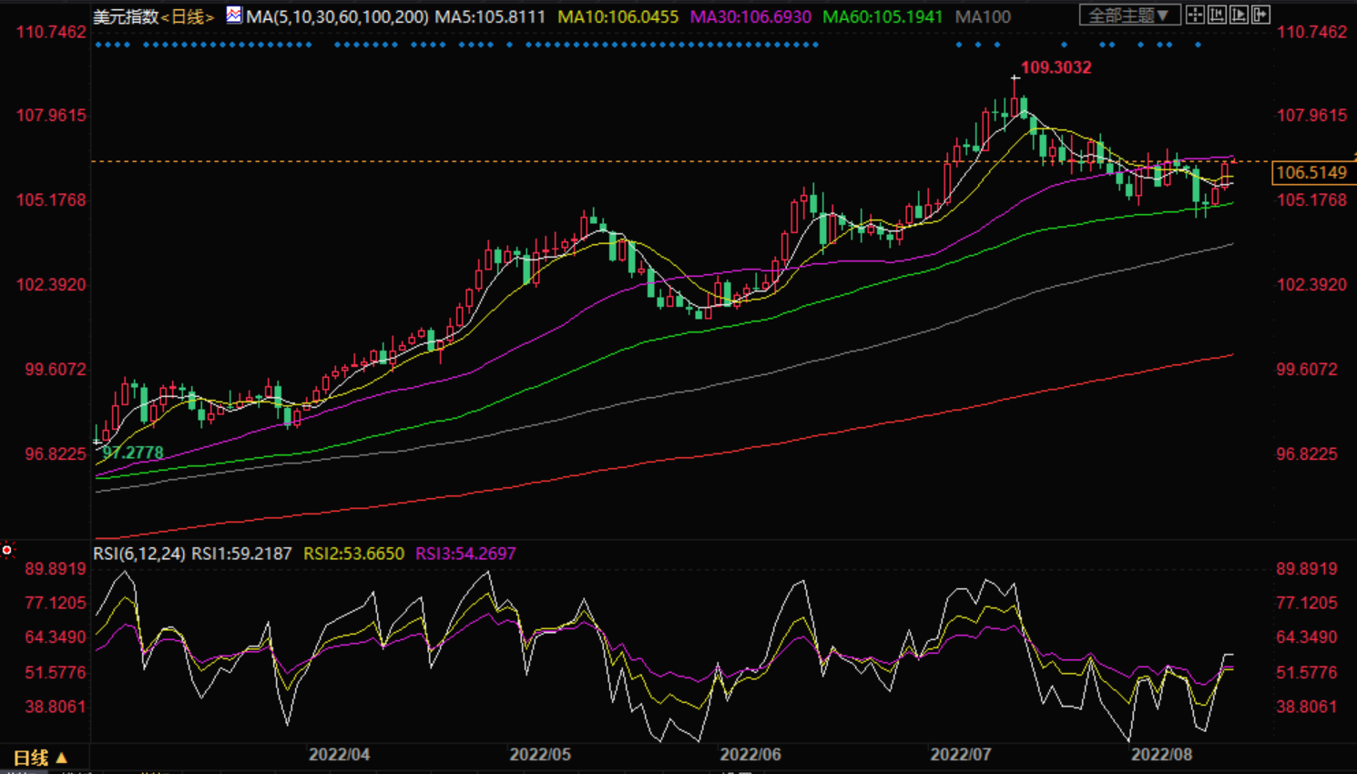 支撑位:105.85 105.2 104.85