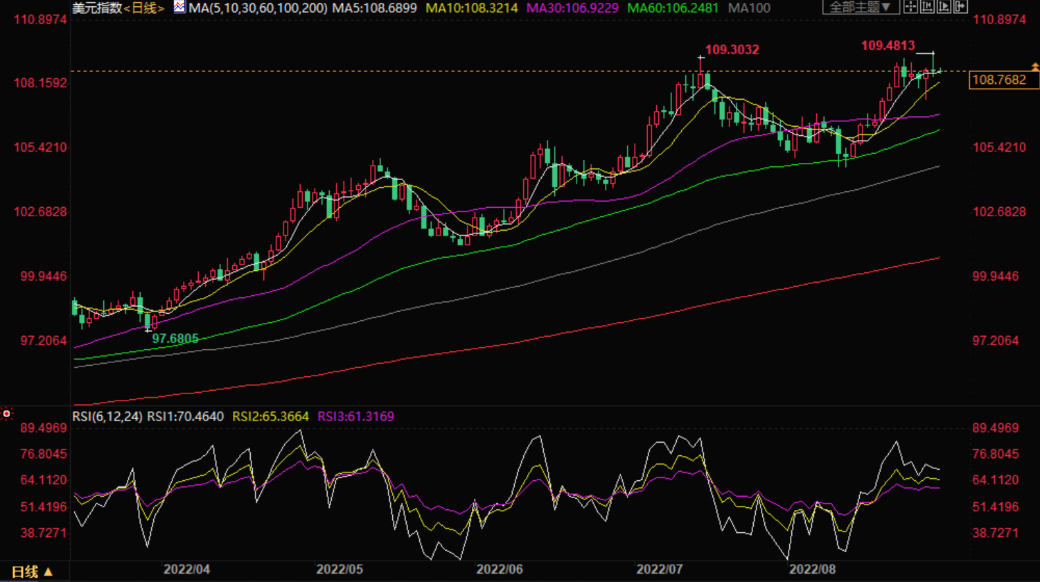 美元指数:截止发稿,美元指数盘整,现报108.76,跌幅0.01%。欧市盘前,美元指数徘徊于108.80附近,因为投资者在等待美国ISM制造业数据的公布,该数据将于周四公布。预计该数据录得52,低于前值52.8。由于美联储完全聚焦实现物价稳定,经济活动料经历痛苦期。