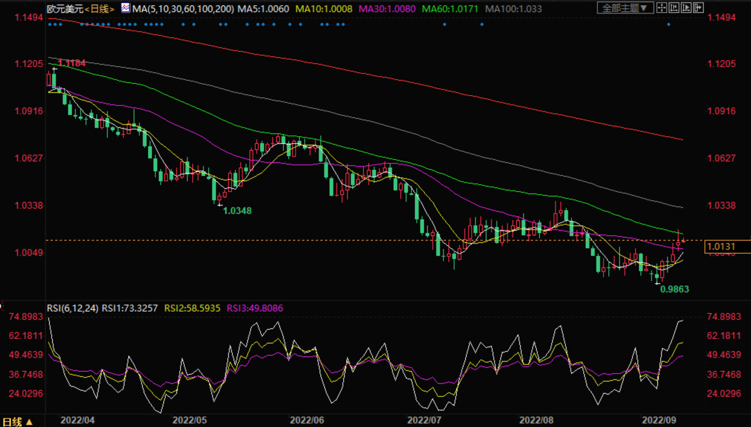 如果完全突破1.02,将测试8月10日高点约1.0370附近。