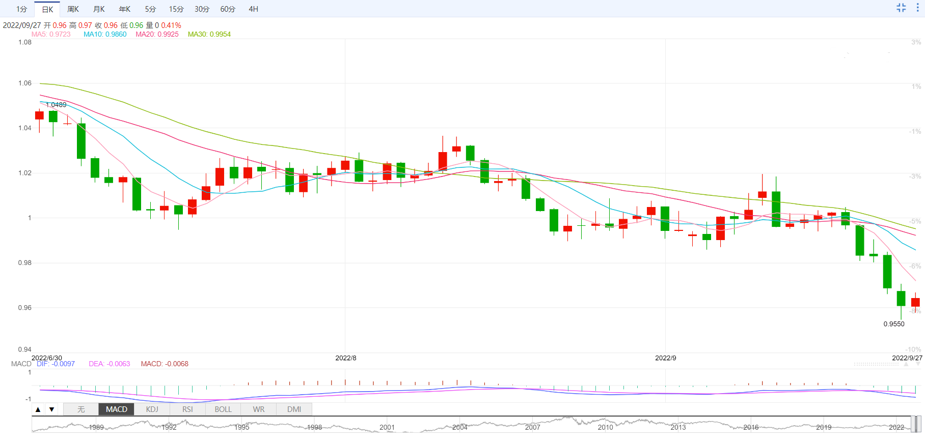 支撑位:0.9539 0.9467 0.9382
