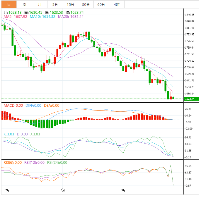 金价周二从两年半低位反弹,美元涨势暂停,有助于恢复黄金的吸引力,但迫在眉睫的加息风险依然存在。道明证券大宗商品策略师RyanMcKay表示:“今天只是在最近几天看到的一些极端疲软之后的一点反弹,但我不认为金市真的会发生任何根本性的变化。”美元从20年高位回落,促使投资者转向黄金,黄金在上一交易日触及2020年4月以来最低的1620.20美元。芝加哥联邦储备银行主席埃文斯(CharlesEvans)周二表示,美联储今年至少需要再加息100个基点。