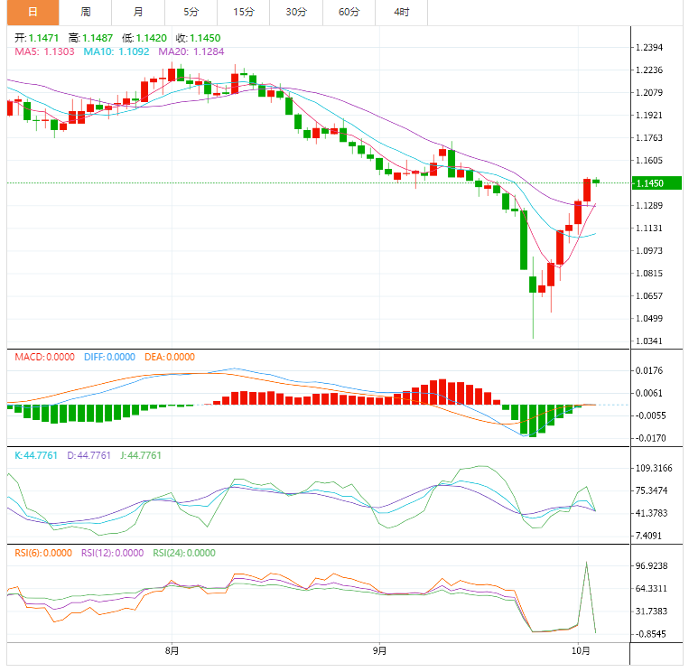 周三,美元指数交投于110.19附近;美元周二回落超1%,连续第五日下跌,投资者猜测美联储可能会放缓加息步伐,英镑大涨1.2%,脱离同样在9月26日创下的纪录低点1.0327美元;在最近由政府引发的震荡之后,英国国债市场归于平静缓解了英镑的压力。欧元尾盘上涨1.6%,报0.9978美元,从9月26日创下的20年低点0.9528美元回升,而英镑大涨1.2%,报1.1456美元,脱离同样在9月26日创下的纪录低点1.0327美元。
