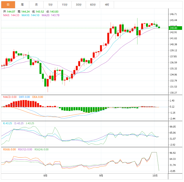 美元兑日元下跌0.4%,报144.03,保持在145日元之下,周一美元兑日元短暂升穿该水平,为日本当局9月22日入市干预以支持日元以来首次。日本财务大臣铃木俊一周一重申,如果“急剧且单方面”的日圆走势持续下去,当局随时准备“果断”入市干预。隔夜,澳洲联储宣布加息25个基点,幅度低于预期,令市场意外。在这轮全球紧缩周期中,该央行的现金利率在几个月内六次加息后升至九年最高,澳元下跌0.2%,报0.6503美元。