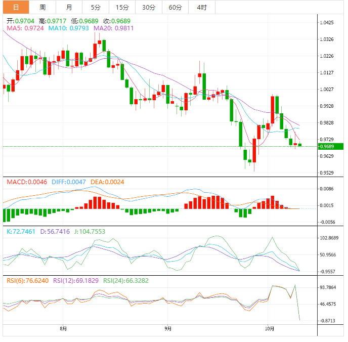 欧元兑美元在0.9700附近横盘移动。法国兴业银行(Société Générale)经济学家们认为,欧元不会因此得到缓解,欧元兑美元有可能再次测试9月份的低点。