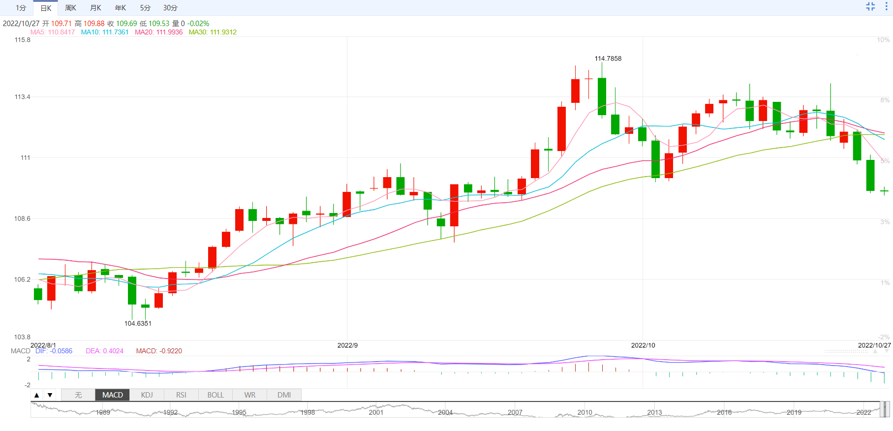 美元指数在东京交易时段创下了109.56的月新高。在放弃关键支撑位110.00后,美元指数已转入负值轨迹,预计未来将进一步走软。引发全球市场决定性波动的一个关键因素将是美国国内生产总值(GDP)数据。根据预测,美国经济在2022年第三季度的增长率为2.4%,而此前记录的增长率为0.6%。如果数据低于预期,则可能加速美元指数的波动。除此之外,投资者还将关注美国耐用品订单数据。经济数据上升0.6%,而不是下降0.2%。在美国核心消费者价格指数(CPI)持续加速的情况下,耐用品需求的上升可能对美元指数构成支撑。