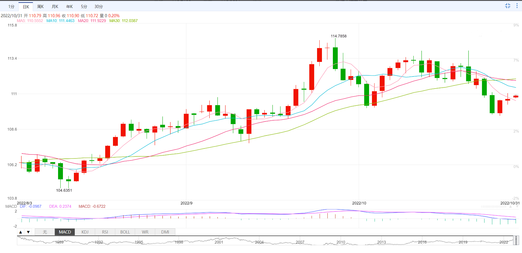 美元指数接近110.80,在此过程中,美元兑六种主要货币的指标受益于市场在美国关键数据/事件之前对风险安全的追逐,以及地缘政治担忧引发的担忧。展望未来,周三的联邦公开市场委员会(FOMC)会议将对美元指数至关重要,因交易商在本周会议利率预期为75个基点的情况下寻求美联储的下一步举措。同样重要的是周五将公布的美国10月份就业报告。技术上,50日移动均线挑战美元指数在110.95附近的短期复苏,之后挑战8月以来的支撑线,现在是112.00附近的关键阻力位。