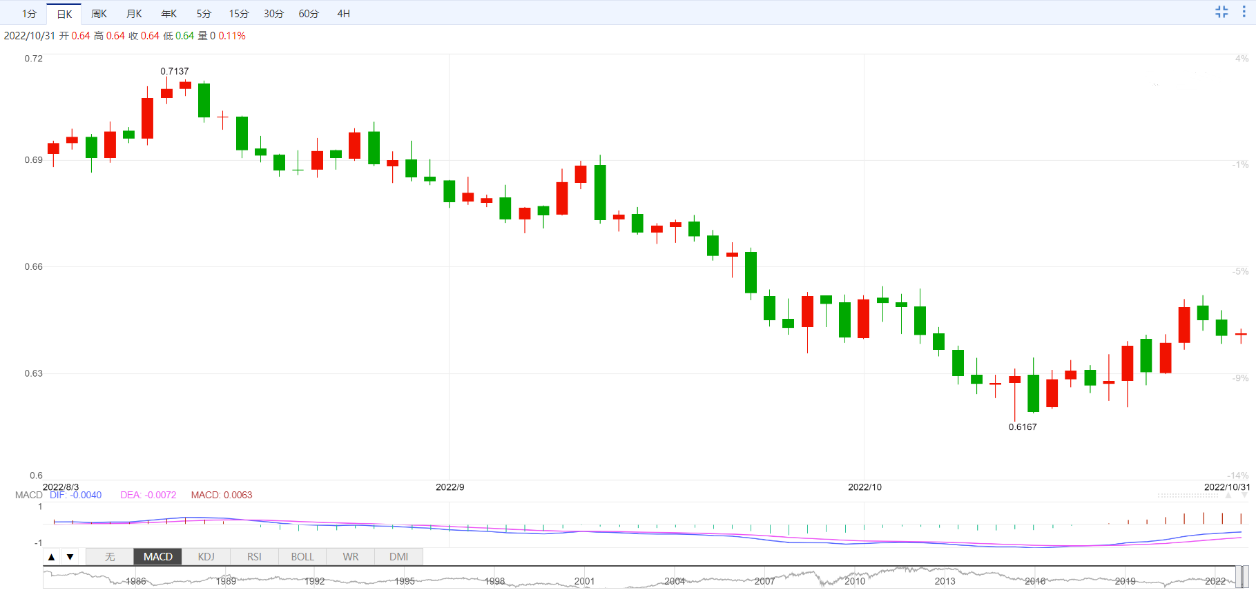 如果澳洲联储出人意料地加大加息力度,澳元可能会上涨,但在周三关键的美联储决议之前,涨势将是短暂的。在美联储决议之前,很难上破8-10月跌势的38.2%费波纳奇回档位0.6539附近阻力。