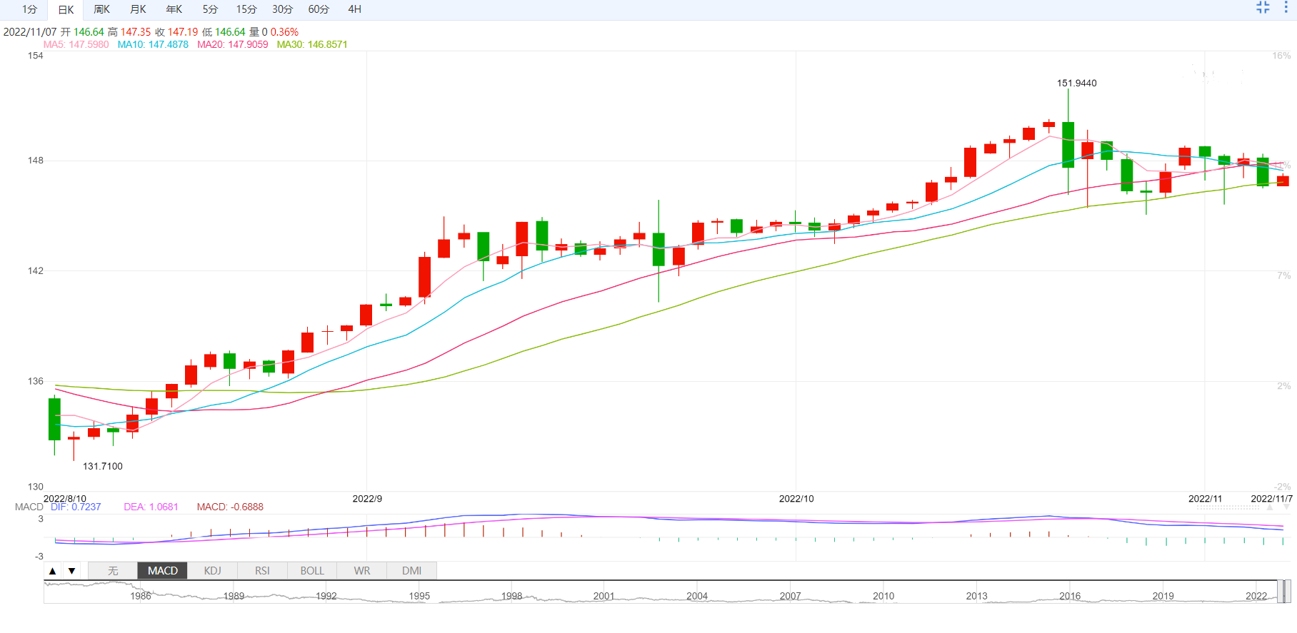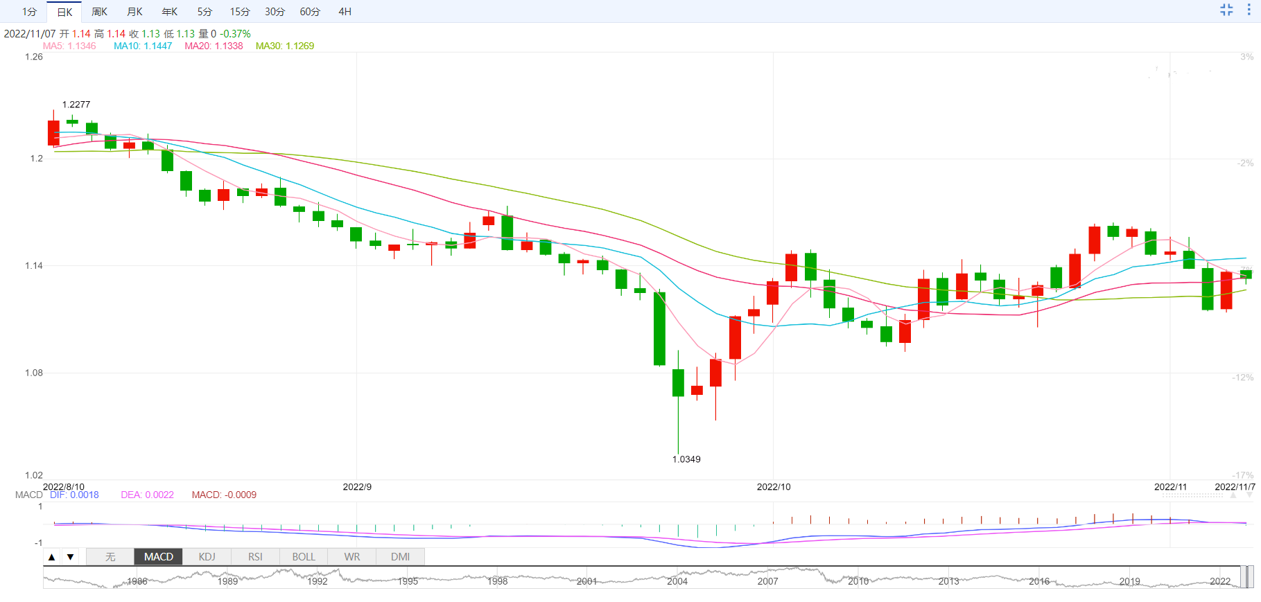 美元指数徘徊在111.00上方。不过,空头可能加入美元指数的反向走势,强势的美元指数可能延续上周五的跌势。据路透社报道,芝加哥联邦储备银行行长查尔斯·埃文斯(Charles L. Evans)周五表示,美联储小幅加息的时机已经成熟,以避免过度收紧货币政策,并在风险变得更加“两面性”时进一步放缓加息步伐。本周的重头戏将是周四发布的美国消费者价格指数(CPI)数据。根据初步估计,总体CPI下降到8.0%,而之前发布的是8.2%。而不包括石油和食品价格的核心CPI下降6.5%,而早些时候记录的6.6%。