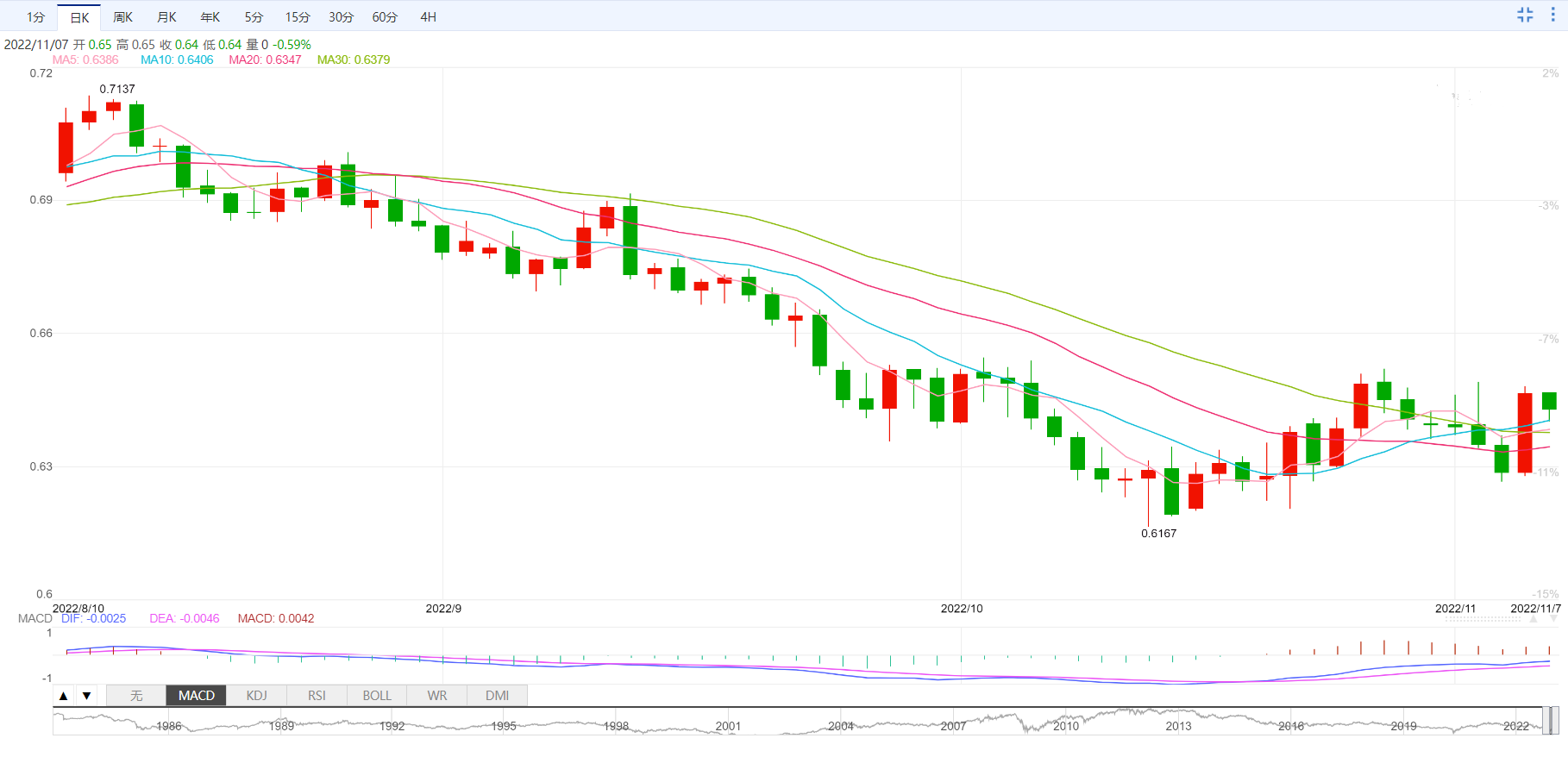 澳元兑美元亚市跌至0.6408附近后反弹。虽然中国贸易数据疲软,但澳元多头增强。中国10月出口增长7.0%,预期14.8%,前值10.7%,而进口增长6.8%,预期6.0%,前值5.2%。由于目前的借款利率和美联储提议的终端利率的偏差已经明显下降,消费者价格指数(CPI)数据的变化程度将决定美联储是否会提高终端利率的峰值或将保持不变。根据初步估计,总体CPI被认为低于8.0%,而之前发布的是8.2%。而不包括石油和食品价格的核心CPI被认为低于6.5%,而之前的记录为6.6%。
