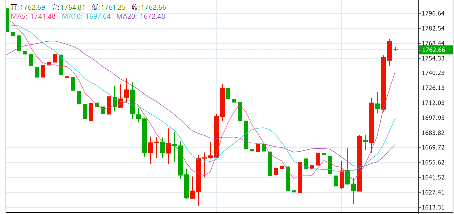 周三(11月9日),黄金继续刷新8月以来高位,创一年多来最佳单周表现。现货黄金收涨0.89%,报1771.29美元/盎司;现货白银收涨0.12%,报21.71美元/盎司。