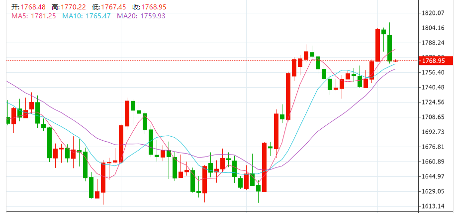 周一(12月5日),现货黄金跌破1770美元/盎司,现货白银盘中跌超4%。截止收盘,现货黄金收跌1.61%,报1768.82美元/盎司;现货白银收跌3.87%,报22.25美元/盎司。