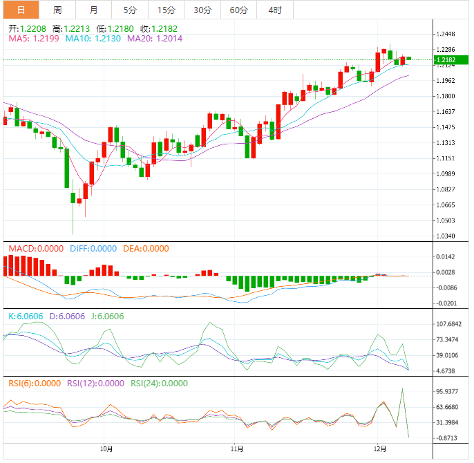 盘中支撑位为1.2085 - 95。阻力位为1.2220。