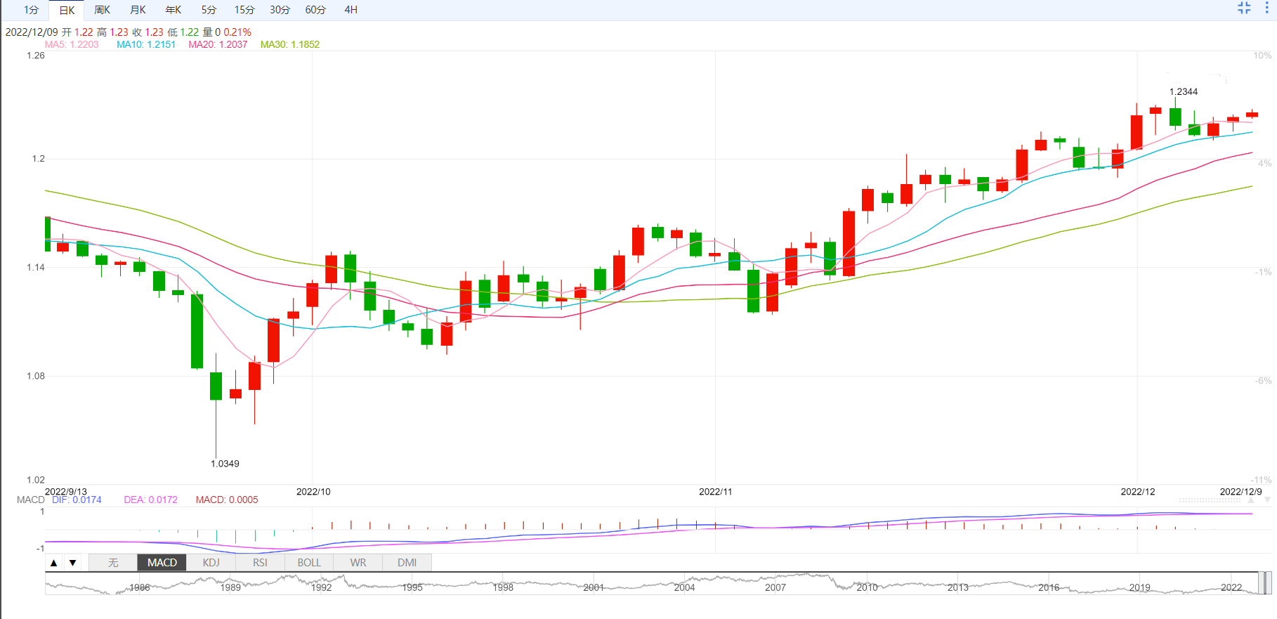 英镑从盘中高位1.2270附近回落。这样一来,英镑对将为英国央行(BOE)下周货币政策中的鹰派举措做好准备。另一个有利报价买家的因素可能是,由于近期美国国债收益率下跌和数据走软,美元整体走软。接下来,密歇根州12月消费者信心指数初值预期为53.3,前值为56.8。同样值得关注的还有密歇根大学(UoM) 5年消费者通胀预期,此前数据为3.0%。最重要的是,下周美国联邦公开市场委员会(FOMC)和英国央行货币政策委员会(MPC)的货币政策会议将是英镑对观察明确方向的关键。