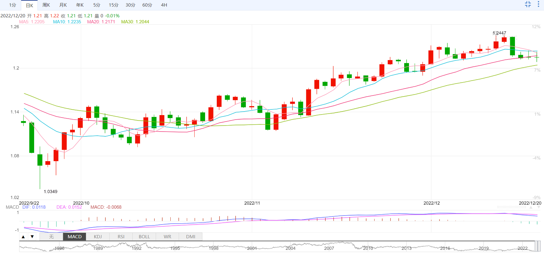路透社报导称,澳储行在12月的政策会议上考虑维持利率不变,理由是迄今为止激进紧缩政策效应出现滞后,以及不确定环境下谨慎行事有好处。澳储行董事会在今年的最后一个决议的决策当中考虑三个选择,即加息50个基点、25个基点或暂停加息,但加息25个基点的观点佔据上风。澳元/美元在0.6665附近刷新盘中低点,逆转周初的反弹行情,空头回归。接近0.6895的月度高点和0.6900的整数位可以充当额外的上行障碍,之后将指引澳元兑美元指向8月高点0.7135附近。