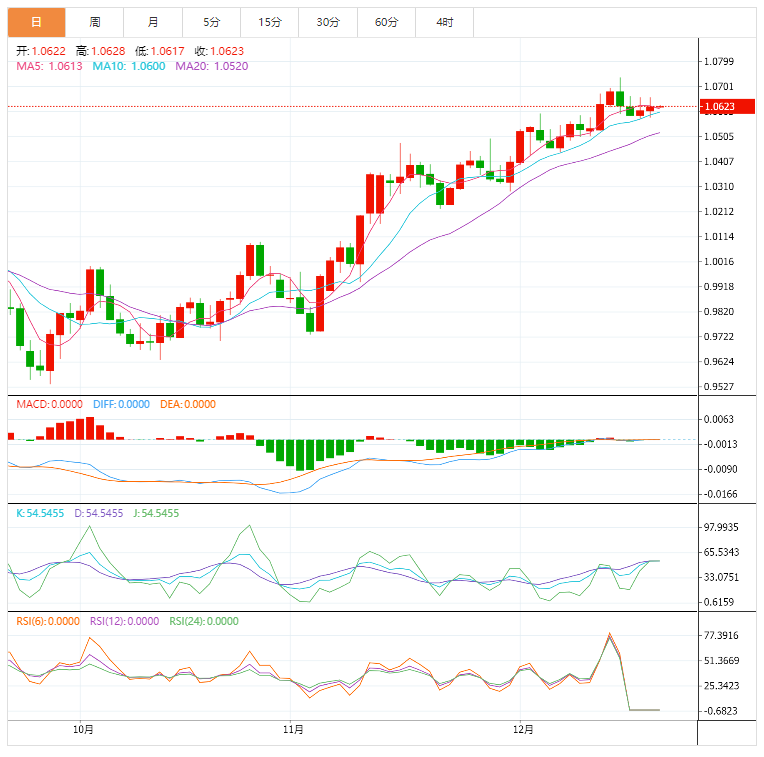 欧元/美元在1.0600附近盘整。加拿大丰业银行(Scotiabankr)经济学家报告称,该货币对在短期内突破1.0655/60后可能扩大涨幅。