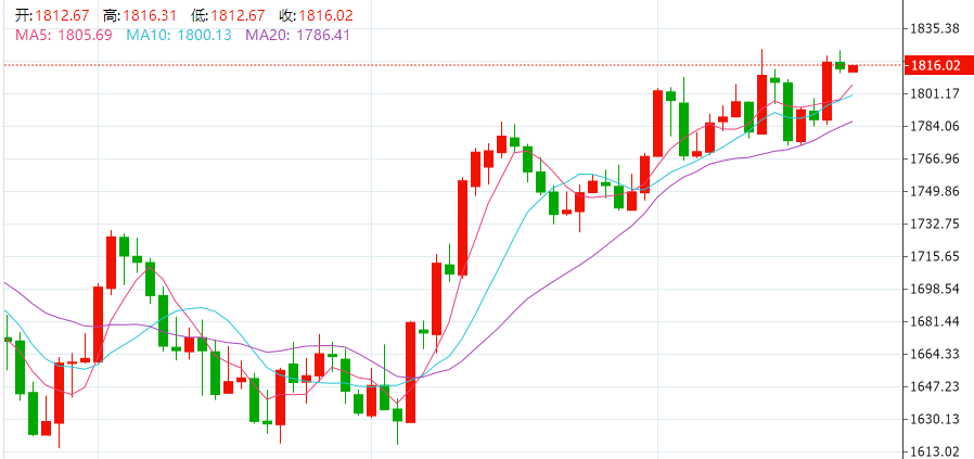 周三(12月22日)现货黄金在美盘前下逼1810关口,但在美盘初一度突破1820关口,最终收跌0.18%,报1814.64美元/盎司;现货白银跌破24关口,收跌0.73%,报23.97美元/盎司。