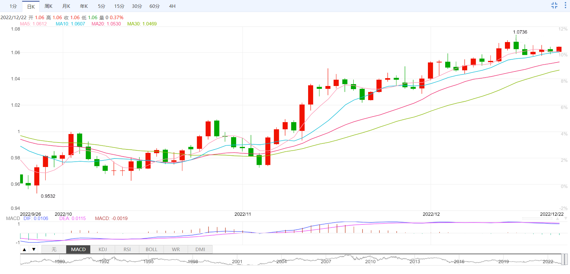 欧元/美元刷新盘中高位1.0650附近。在这期间,欧元/美元上涨于本周交易区间内,结束前日回调走势。支持欧元/美元上涨的是MACD信号看涨和相对强弱指标(14)坚挺,以及多头维持在50指数移动均线上方。应该注意的是,12月05日高位1.0595附近构成支撑,若汇价跌破该水平,空头将占主导。如果欧元/美元维持疲弱,跌破1.0595,那么不排除欧元/美元跌向本週新低(目前1.0575附近)的可能。