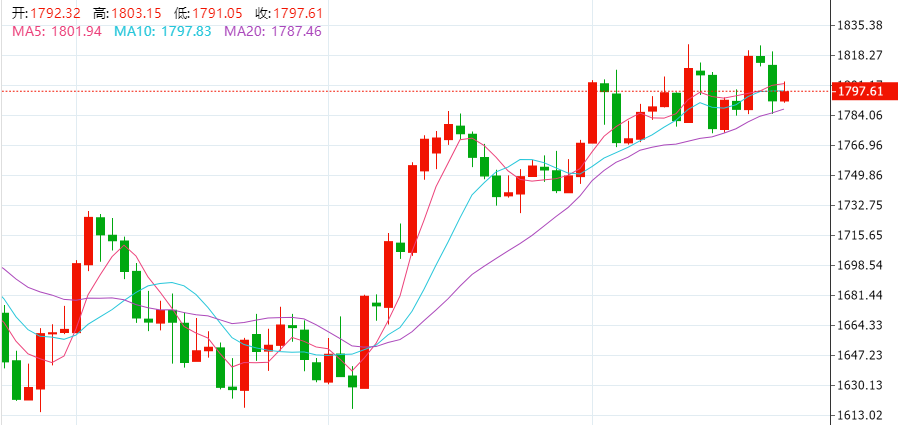 上周五(12月23日),美元疲软之下,现货黄金盘中突破1800关口,随后回落,收涨0.32%,报1798.43美元/盎司;现货白银收涨0.7%,报23.74美元/盎司。