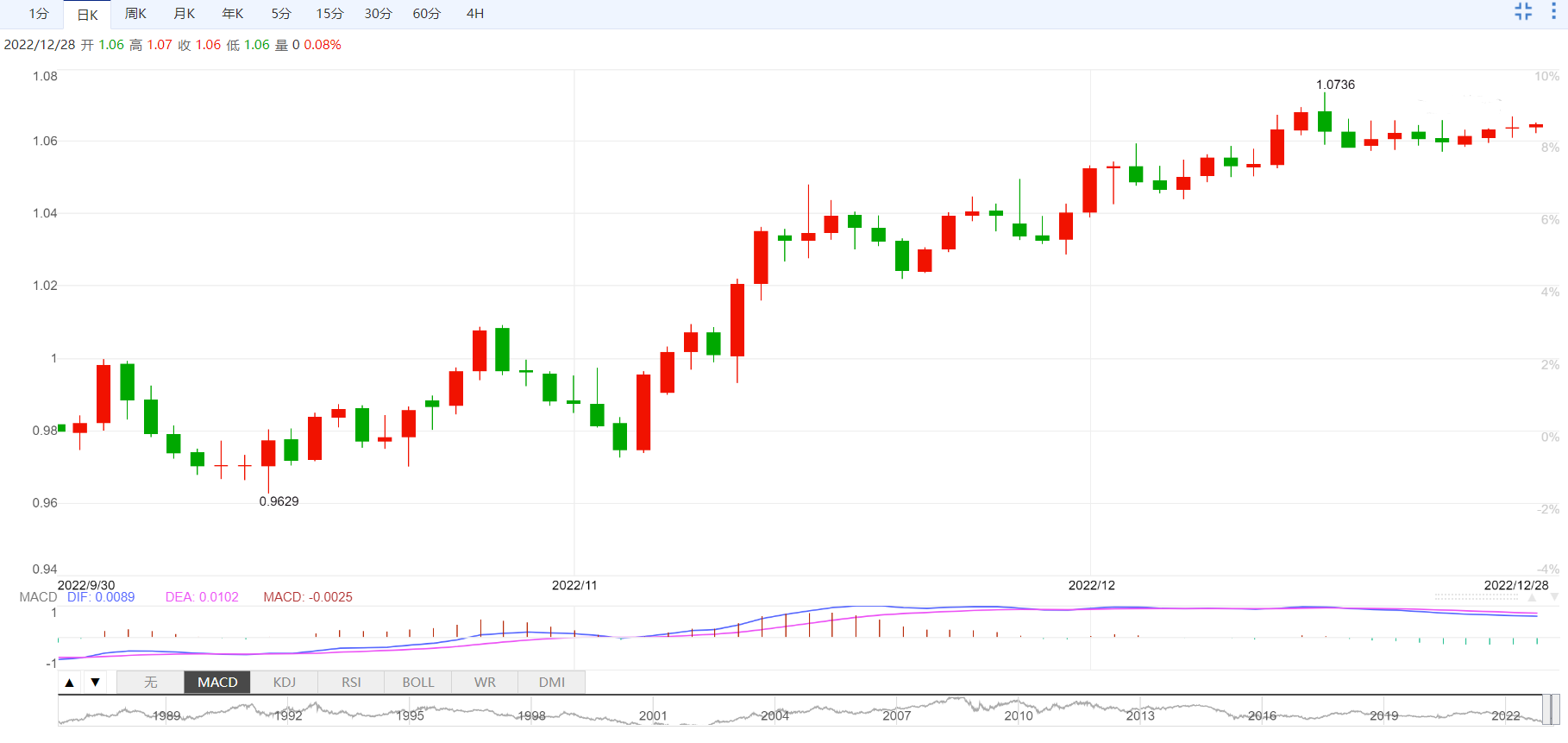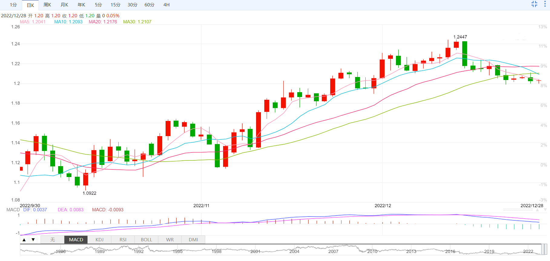 美元指数重新夺回104.00关键阻力位,并预计将重测两日高位104.20附近,假期情绪引发全球市场波动。市场参与者维持焦虑情绪迫使投资者持有避险资产。因此,避险行情正不断受到关注。展望未来,缺乏重大数据/事件可能会继续限制美元指数的短期走势,但美国国债收益率走强有利于多头。即便如此,美国11月成屋待完成销售数据仍保持了0.6%的市场共识,而之前的数据为-4.6%,这可能会成为日历上的亮点。周二看涨的道指烛台暗示美元指数将进一步复苏,除非美元报价回落至近期低点103.88以下。