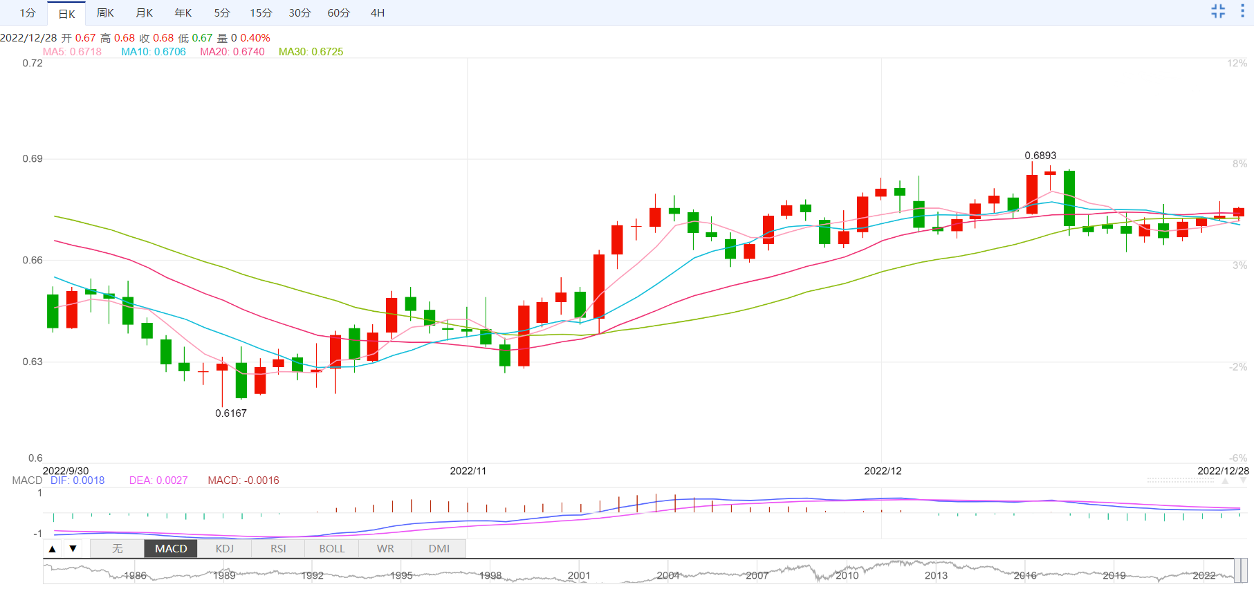 澳元/美元面临突破关键阻力位0.6750的压力。早盘,澳元/美元跌至0.6720附近后出现反弹。澳元/美元需要突破0.6750这一阻力才能延续反弹。然而,美元反弹正阻止澳纽货币乐观情绪。澳元方面,中国重新採取措施以重新提振经济,但未很好地提振澳元。中国政府取消了入境旅客的隔离规定,以缓解供应链中断。澳大利亚作为中国的主要贸易伙伴,将从中国放松新冠疫情防控措施中受益。