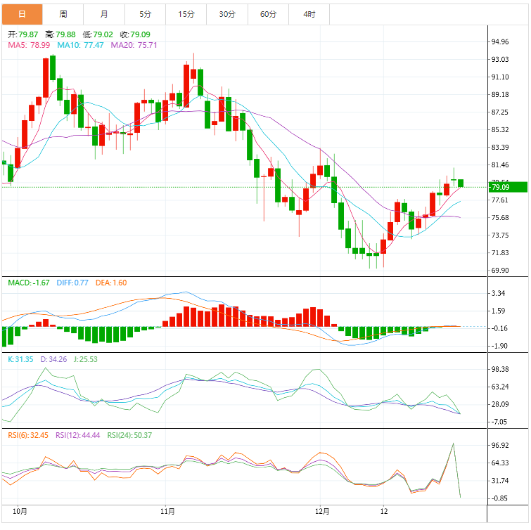 支撑位:78.92 78.07 76.93
