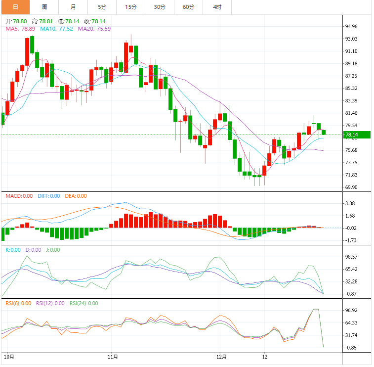 支撑位:77.38 76.08 74.8