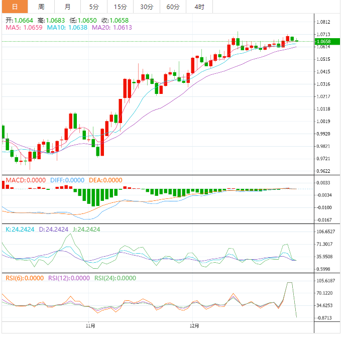 欧元:欧元/美元处在1.0650上方,震荡于30个点区间。投资者庆祝完新年后重新开盘交易,欧元/美元这一主要货币对的吸引力正增强。过去三周,4小时图显示欧元/美元盘整于1.0576-1.0736区间。欧元/美元维持长时间盘整通常会导致波动率收缩,从而使得波动率加大且交易量加大。欧元/美元继跌至50周期指数移动均线 1.0650附近后出现反弹。另外200-均线1.0500正朝北,表明欧元/美元维持稳定的上涨趋势。
