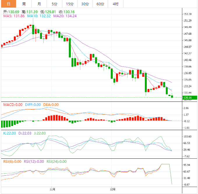 周二亚洲时段,美元指数上涨至103.76,美元兑日元剧烈震荡,一度创近五个月新低至130.53附近, 日本央行将改变低利率路线的观点受到追捧,据日经报道,日本央行考虑上调通胀预测,预计在2024财年更接近2%的目标,不过,由于周一元旦假期,市场整体交投还受到一些限制,美元和风险偏好引领市场,再加上汇价在130关口附近存在较强的支撑,超级周来临之际,部分日元多头获利了结,美元兑日元短线一度拉升逾80点至131.39附近,目前交投于130.77附近。
