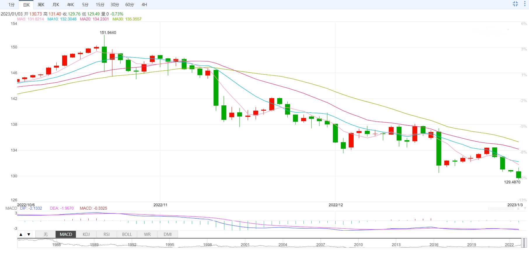 美日跌破支撑位 或进一步下探去年5月低点